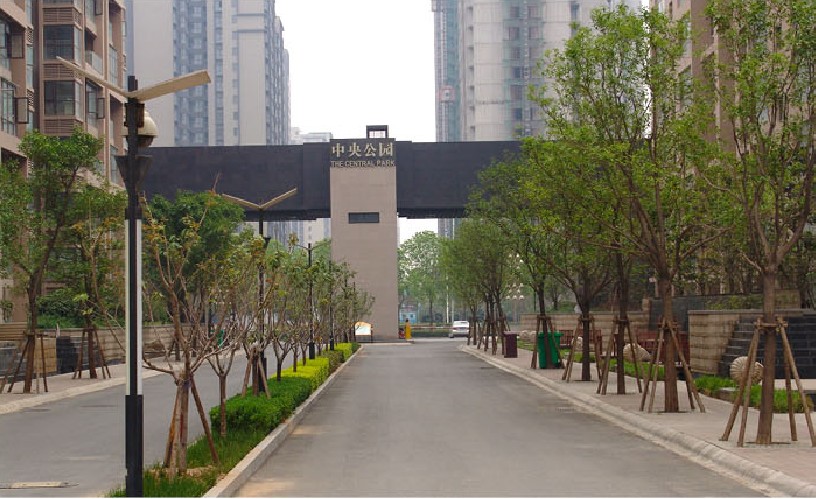 該小區(qū)結(jié)合現(xiàn)代國際先進的設(shè)計理念,是景觀風格與建筑的和諧統(tǒng)一,各種形式的水景,增加小區(qū)活力;植物景觀以當?shù)刂参餅橹鳎嵘参锍苫盥剩訌娙藗兊臍w屬感。