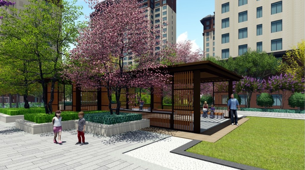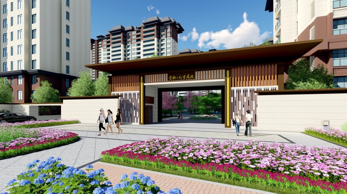 設(shè)計(jì)理念:新中式風(fēng)格,大門造型采用方頂,平直線條來打造,凸顯其莊嚴(yán)、肅穆、大氣之感,基于小區(qū)的功能以及使用人群的屬性,打造運(yùn)動(dòng)空間、休閑會(huì)客空間、靜謐空間。