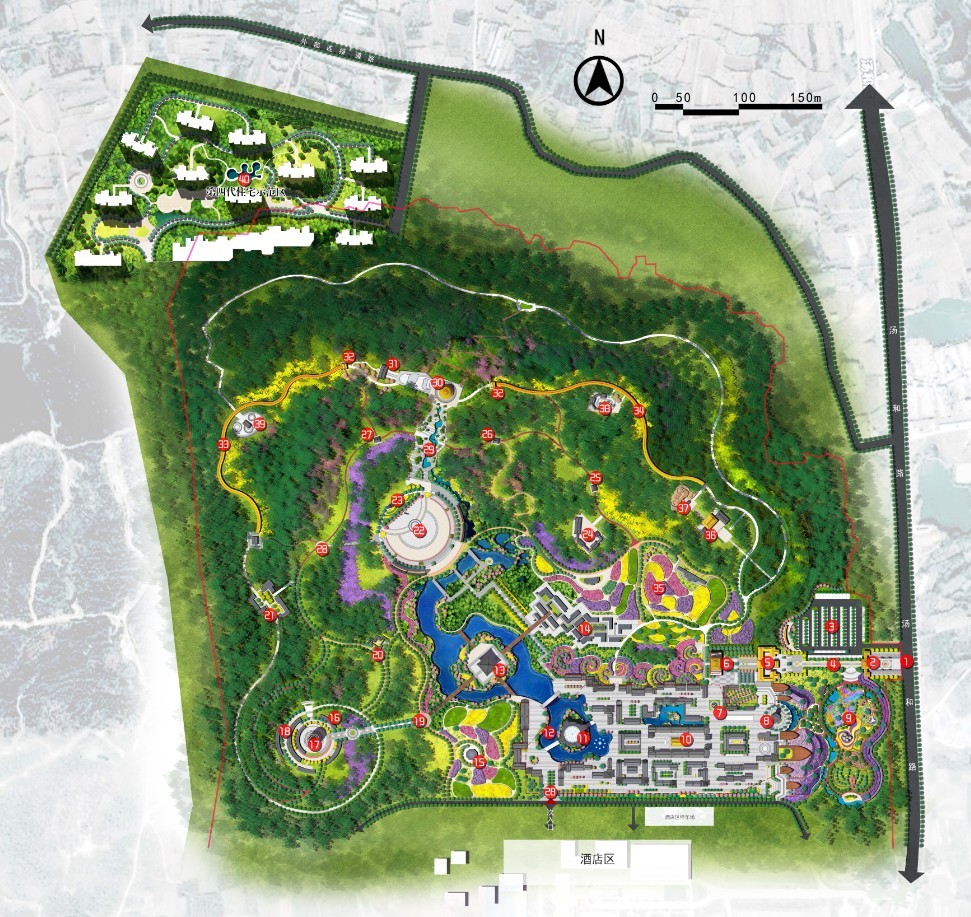 3、以入口服務(wù)區(qū)(龍之目)、明皇小鎮(zhèn)區(qū)(龍之心)、大明文化演藝區(qū)(龍之魂)、大明文化游覽區(qū)(龍之脈)、明皇文化社區(qū)(龍之居)六大功能分區(qū)布局整個(gè)文化園,將大明文化融入到每處景觀規(guī)劃中。