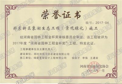 鄭東新區(qū)象湖榮獲2017年度河南省園林工程金杯獎(jiǎng)工程