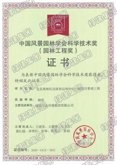 宜昌奧林匹克項(xiàng)目榮獲中國(guó)風(fēng)景園林學(xué)會(huì)科學(xué)技術(shù)獎(jiǎng)園林工程銅獎(jiǎng)