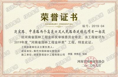 迎賓路、中原路兩個(gè)高速口項(xiàng)目榮獲2019年度河南省園林工程金杯獎(jiǎng)
