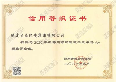 2020年度鄭州市建筑施工總承包AA級(jí)