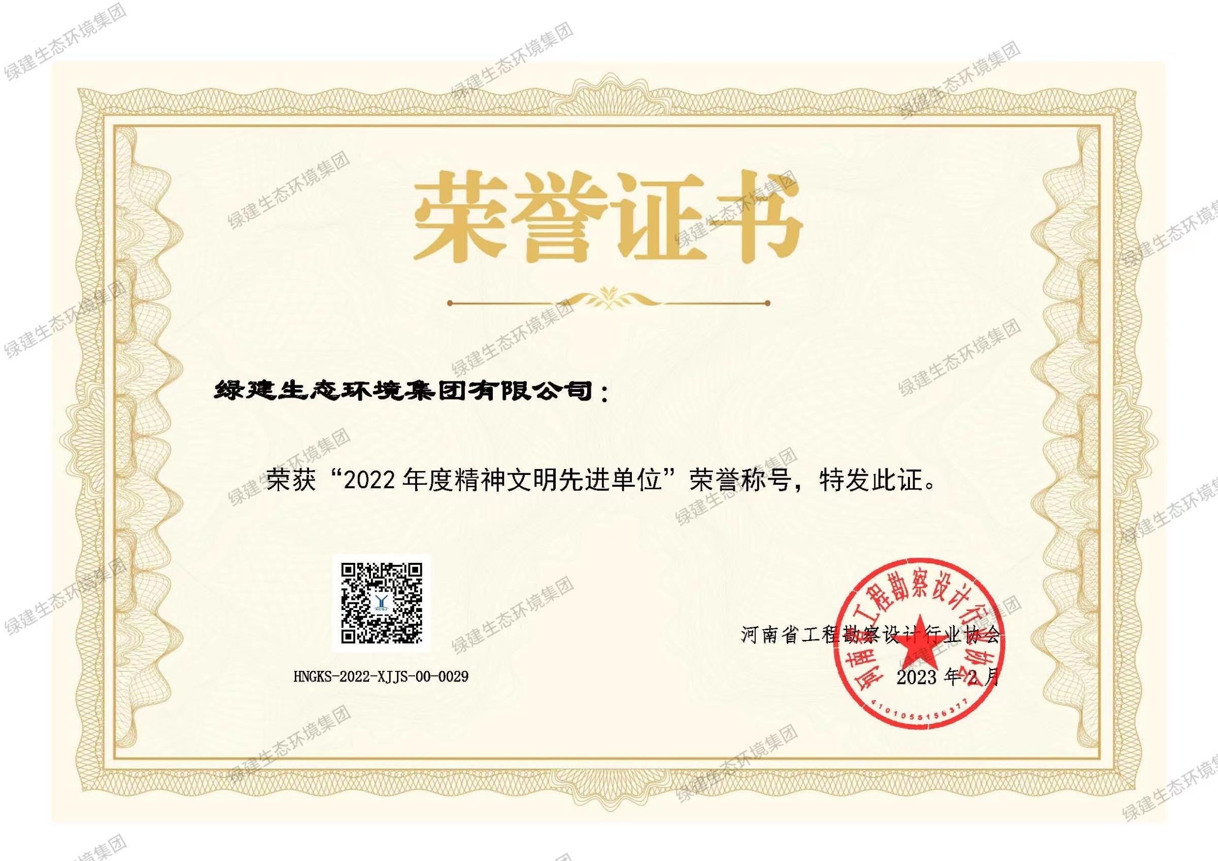 2022 年度精神文明先進單位——河南省工程勘察設計行業協會