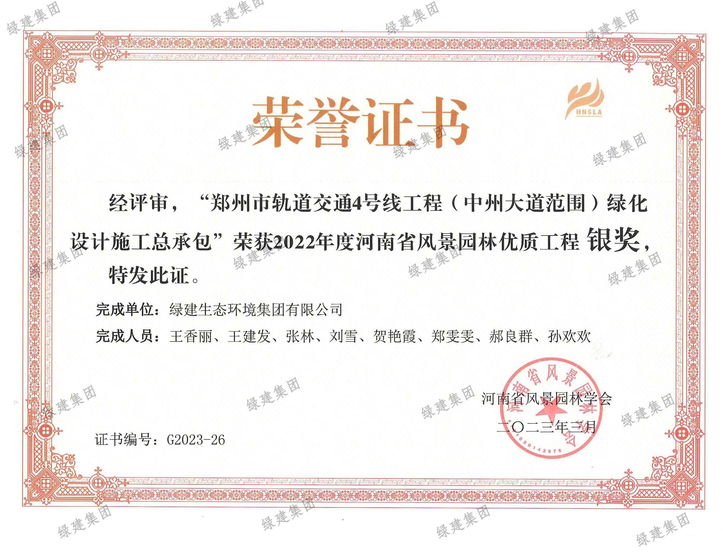 22年度交通軌道4號(hào)線(xiàn)優(yōu)質(zhì)工程獎(jiǎng)-銀獎(jiǎng)