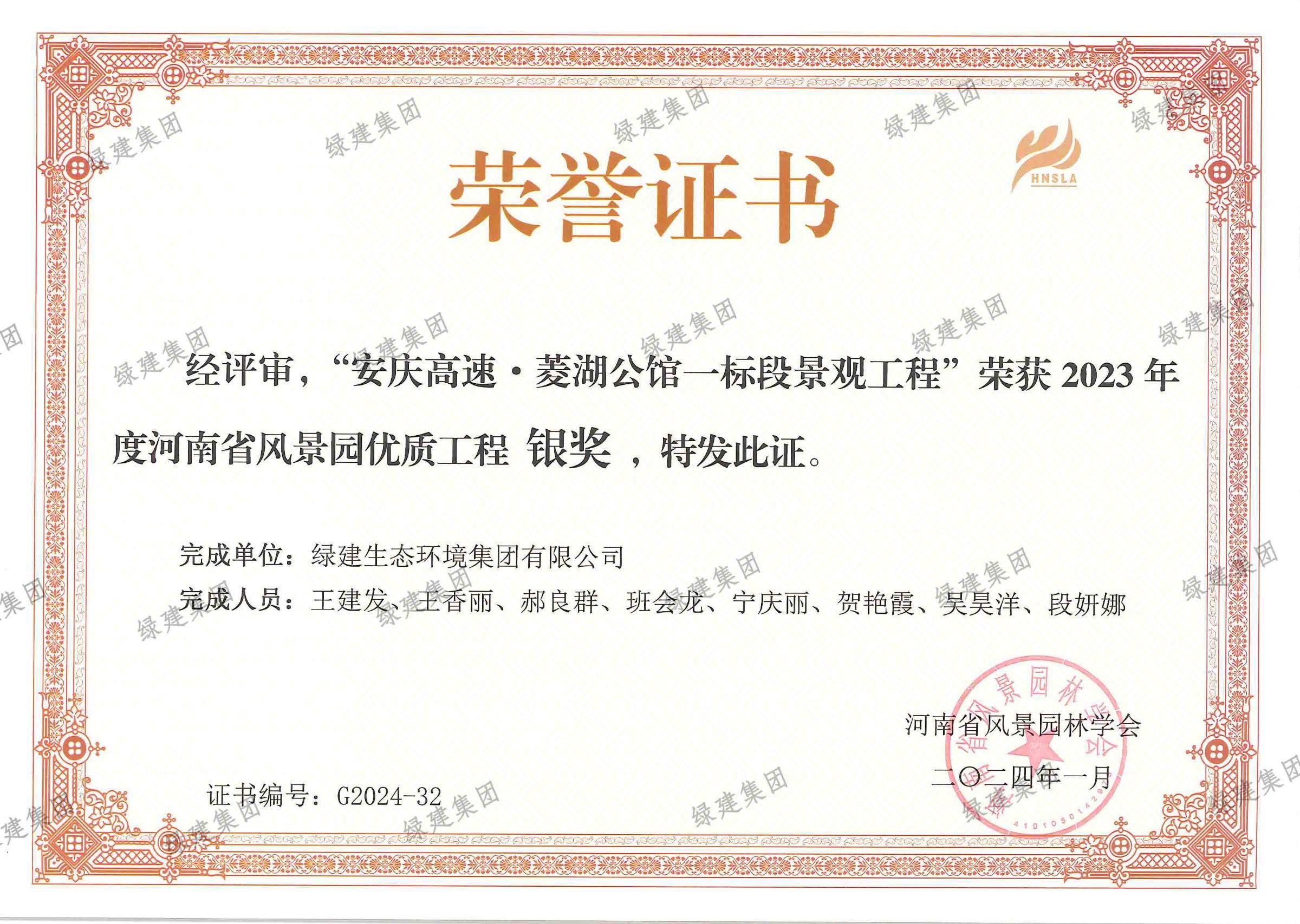 2023年度安慶高速菱湖公館優質工程銀獎