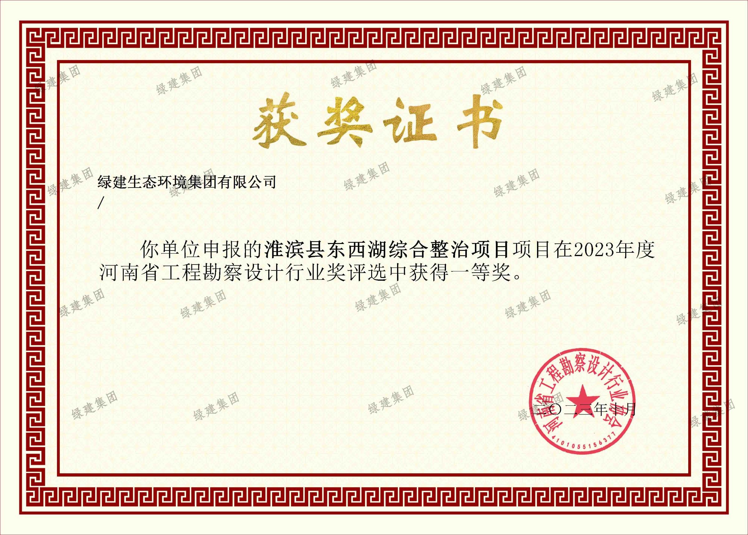 2023年度河南省工程勘察設計行業(yè)一等獎-淮濱縣東西湖綜合整治項目