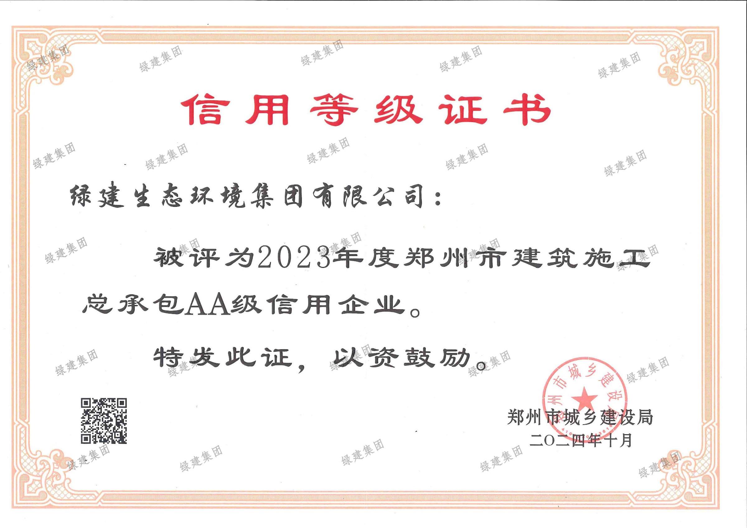 2023年度鄭州市建筑施工總承包AA級信用企業(yè)