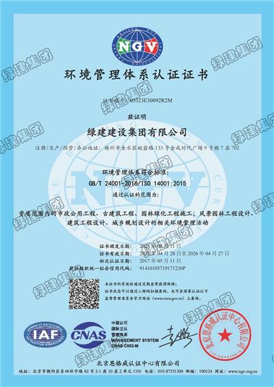 環境管理體系認證證書
